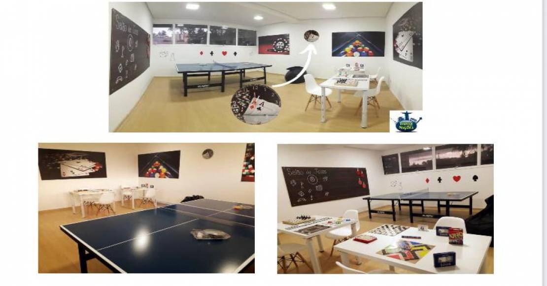 Possui área de fitness, área de brinquedo para as crianças, salão para festas e eventos.